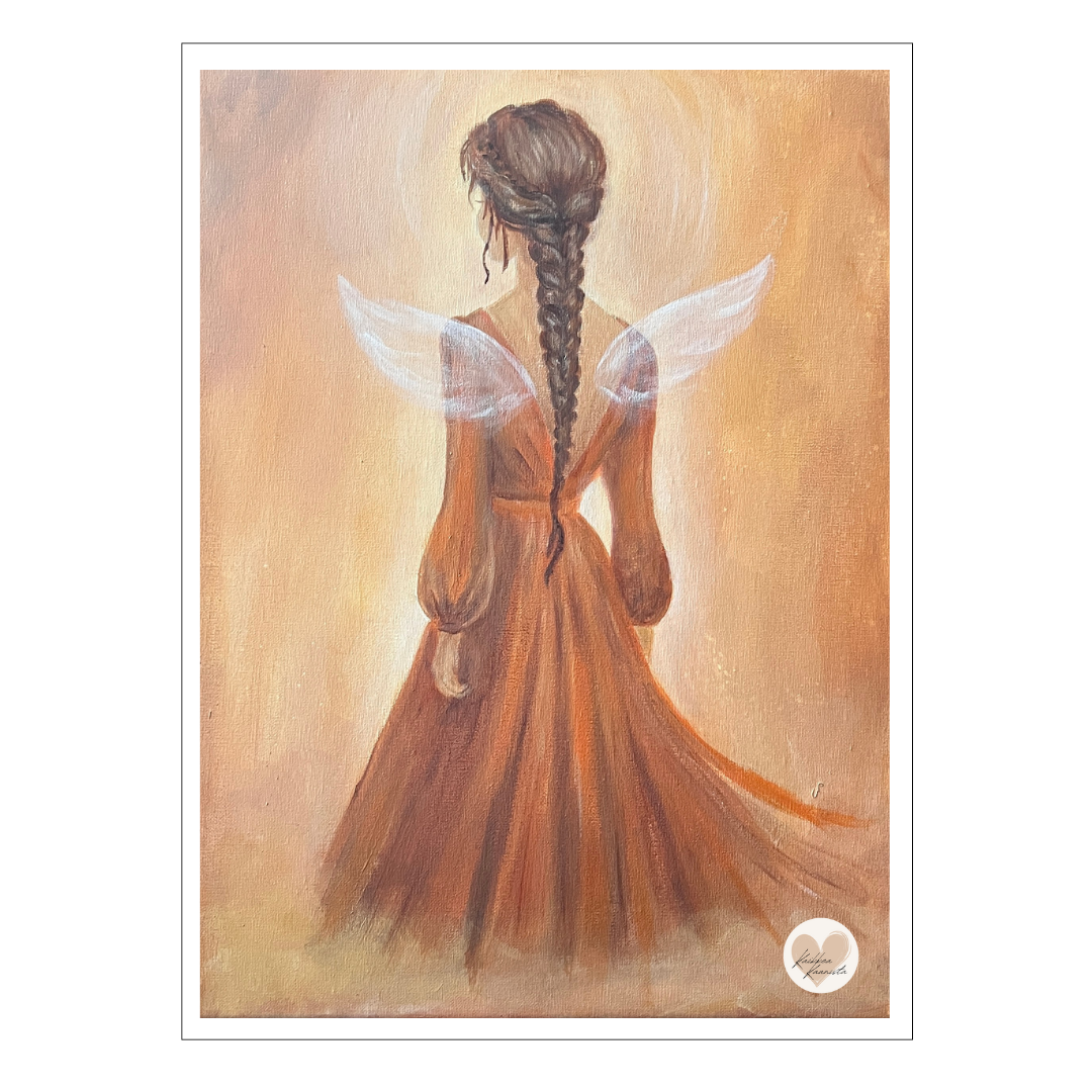 Enkelijuliste Hiljaisuus puhuu lempeästi -taulusta