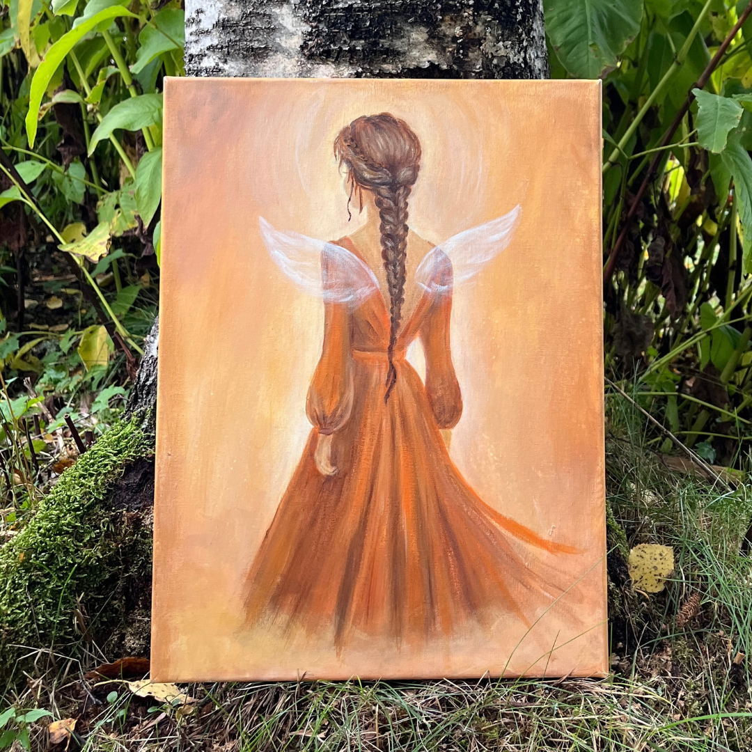 Halusin maalata enkelin, joka kantaa syksyn lämpimiä värejä mukanaan. Syksyssä on jotain pysäyttävää – kun luonnon värit syvenevät, myös sisäinen voima vahvistuu.