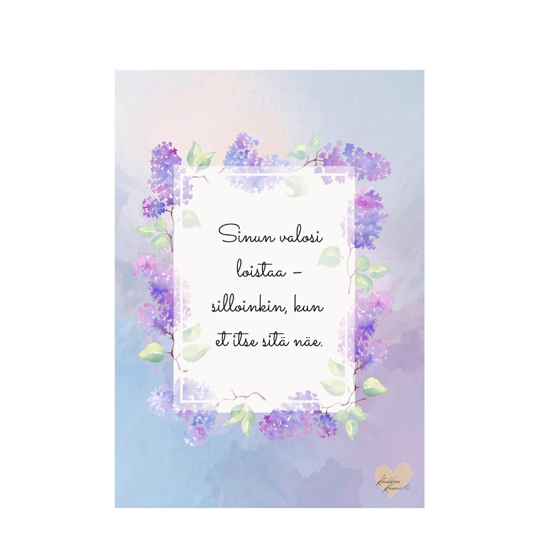 - Julisteessa teksti: Sinun valosi loistaa - silloinkin, kun et itse sitä näe.